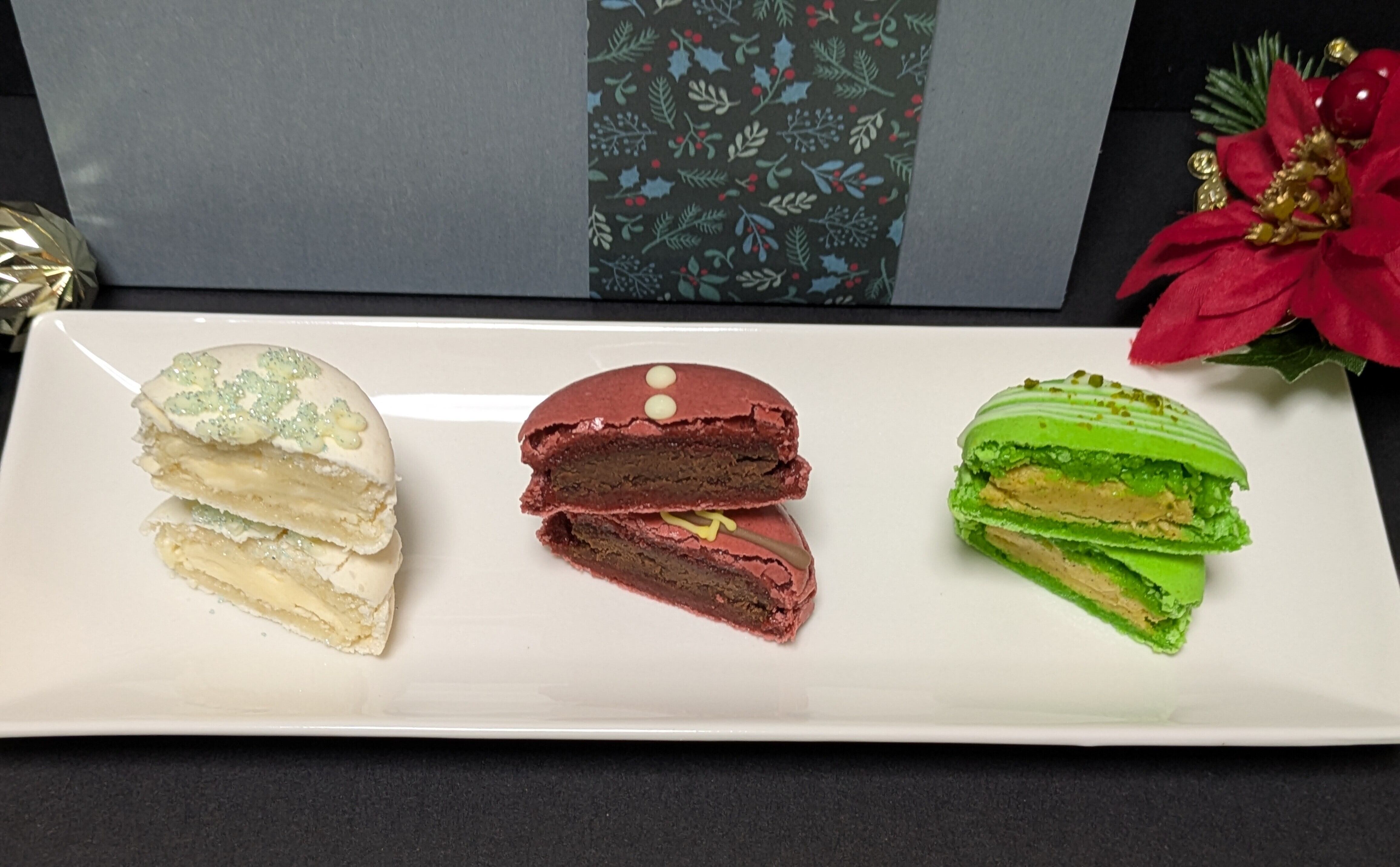 サンタさんをイメージしたチョコレートマカロン。